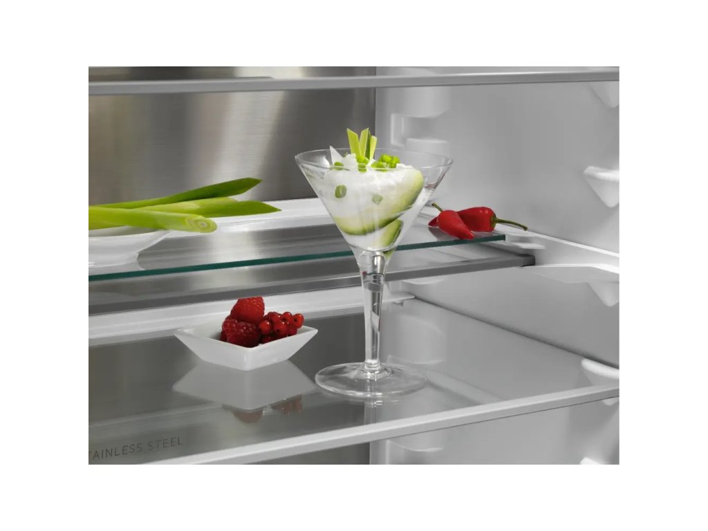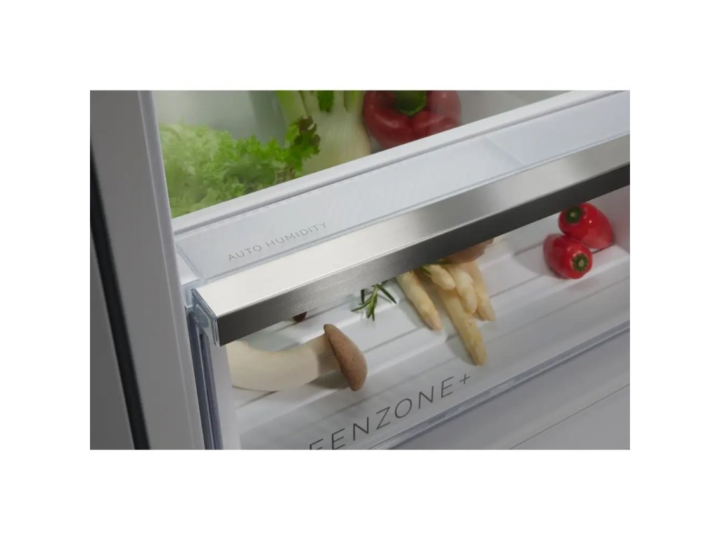 Chladnička s mrazničkou Cooling 360° 8000 obsahuje viacero vzduchových prieduchov, ktoré zabezpečujú jednotné chladenie. Vďaka tomu chráni potraviny na každej polici a pomáha znížiť plytvanie potravinami o 28 %*. Nerezová oceľ zaisťuje elegantný, prémiový vzhľad.