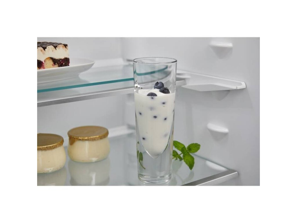 Vstavaná jednodverová chladnička Electrolux s výškou 177,2 cm je veľmi tichá, jej hlučnosť dosahuje len 34 dB. Vyniká rovnomernou cirkuláciou chladného vzduchu, technológia DynamicAir udržuje vo vnútri chladničky stálu teplotu a chráni uschované potraviny, aj keď práve otvoríte dvere. Odhadovaná ročná spotreba dosahuje 143 kWh a chladnička tak spadá do energetickej triedy F. Vnútorný priestor s objemom 311 l je veľký a veľmi prakticky členený.