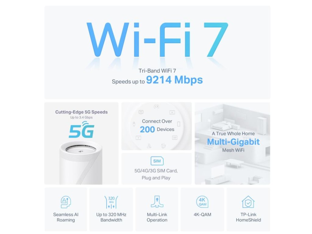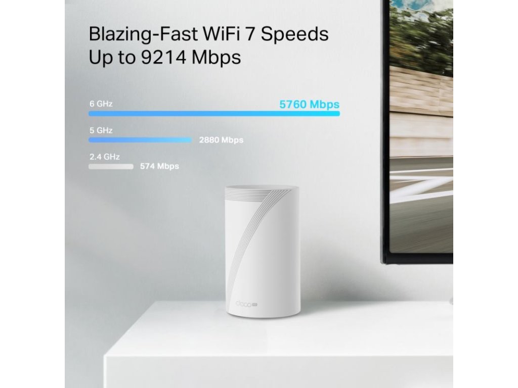 9214 Mb/s trojpásmová Wi-Fi - 5760 Mb/s (6 GHz) + 2880 Mb/s (5 GHz) + 574 Mb/s (2,4 GHz).