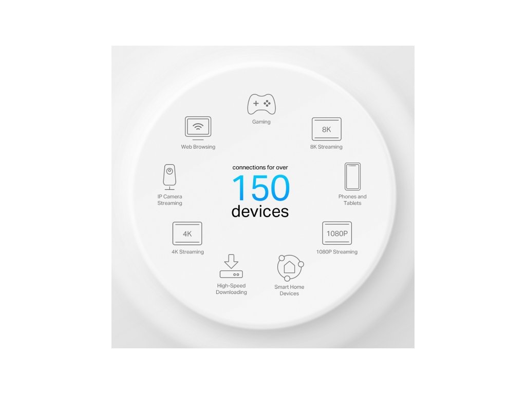 Jednotky Deco spolupracujú a vytvárajú jednotnú meshovú sieť. Využívajú inteligentné algoritmy, automaticky medzi sebou prepínajú a poskytujú vám vždy najsilnejší možný signál. Doprajte si stabilnú sieť v každom kúte vášho domova. Pripojíte k nej viac ako 150 zariadení bez toho, aby došlo k zníženiu výkonu. 2-pack týchto routerov pokryje až 420 m².