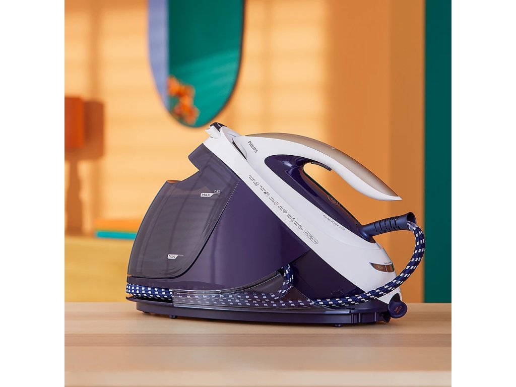 Pravidelné odstraňovanie vodného kameňa chráni žehličku a zaručuje nepretržitý a maximálny výkon pary. Exkluzívny dizajn a ideálna poloha funkcie Easy De-Calc Plus umožňujú dokonalé odstránenie vodného kameňa a predlžujú tak životnosť žehličky s parným generátorom. Žehlička vás pomocou svetelnej aj zvukovej signalizácie upozorní, keď nastane čas na vyčistenie a odstránenie vodného kameňa. Keď zariadenie vychladne, jednoducho vyberte uzáver Easy De-Calc, zlejte znečistenú vodu a vodný kameň do hrnčeka a potom vylejte.
