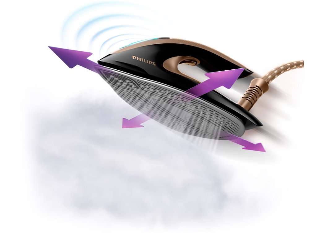 Náš inteligentný snímač DynamiQ presne vie, kedy a ako sa žehlička hýbe, takže výkonnú paru vypúšťa vtedy, keď ju najviac potrebujete. Žehlenie je vďaka tomu jednoduchšie a výsledky dosiahnete rýchlejšie.
